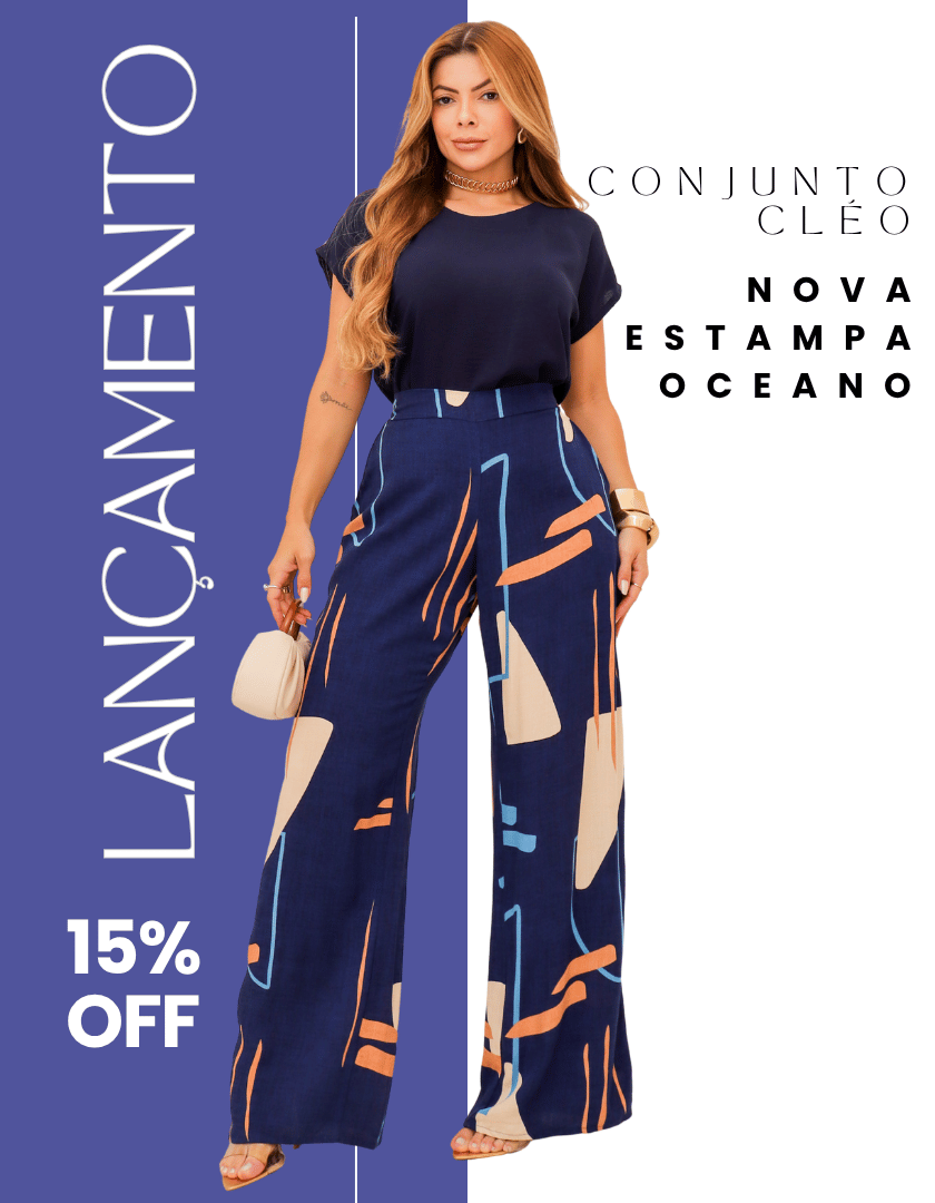Preço normal R$ 109,99Preço normalPreço unitário / porR$ 119,99Preço promocional R$ 109,99PromoçãoConjunto Cléo Calça Estampada + Blusa