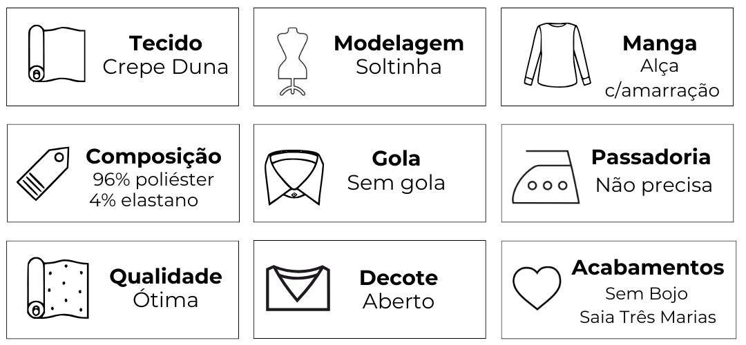 Nossa modelo veste 38 e usou tamanho P. Caso fiquem na dúvida, confira também nossas medidas a baixo.