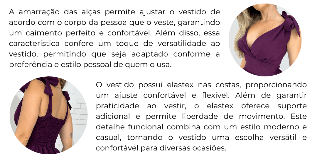 Para escolher o tamanho ideal, consulte nossa tabela de medidas disponível em cada página de produto. Meça seu busto, cintura e quadril e compare com as medidas da tabela para encontrar o tamanho que melhor se adequa ao seu corpo.